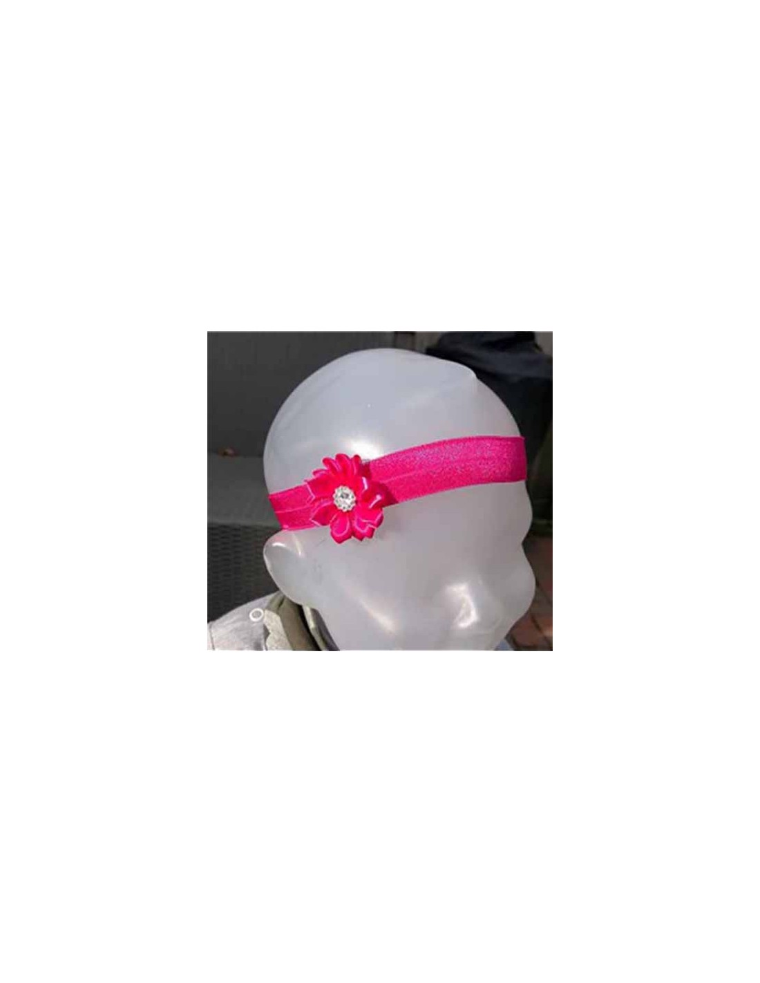 Super lief haarbandje met fuchsia bloem met steentje 40 mm