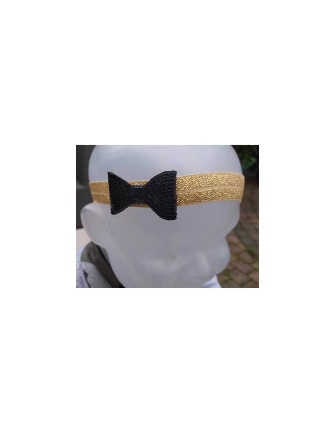 Super lief haarbandje met strik op goudkleurig elastiek 55 mm