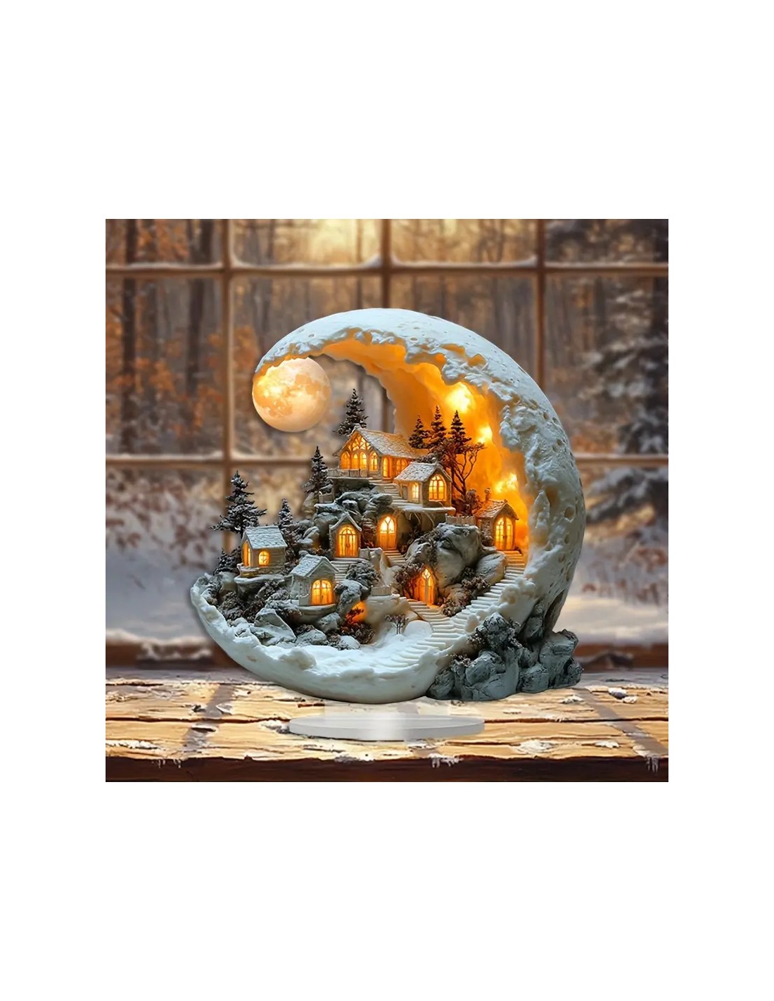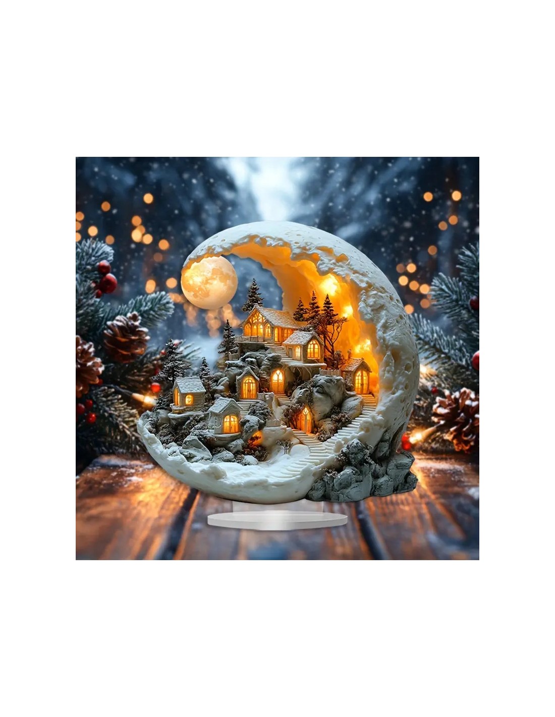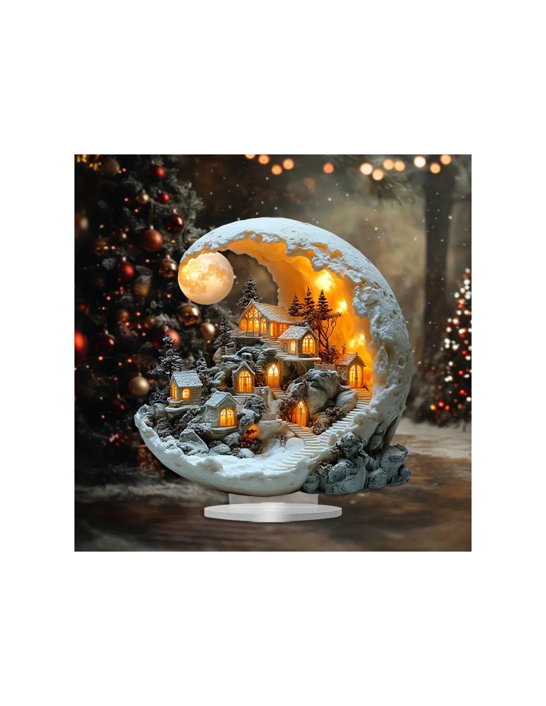 Acryl kerst Maanlicht Huis