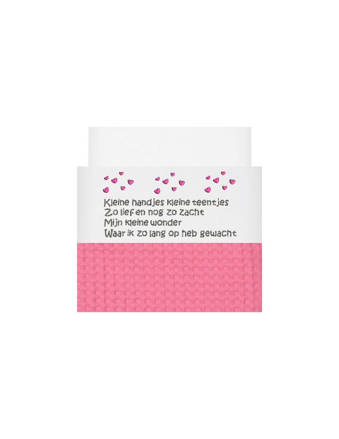 Laken geborduurd met de tekst kleine handjes